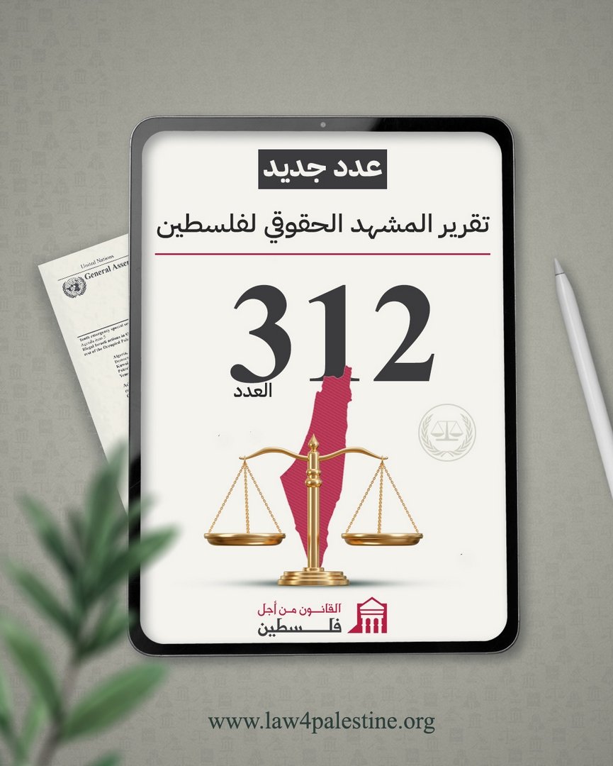 المشهد الحقوقي لفلسطين – العدد 312 رصد لأهم الإصدارات و النشاطات المتعلقة بـ فلسطين والقانون الدولي على مدار الأسبوع محلياً ودوليا 21 – 27 ديسمبر/كانون الأول