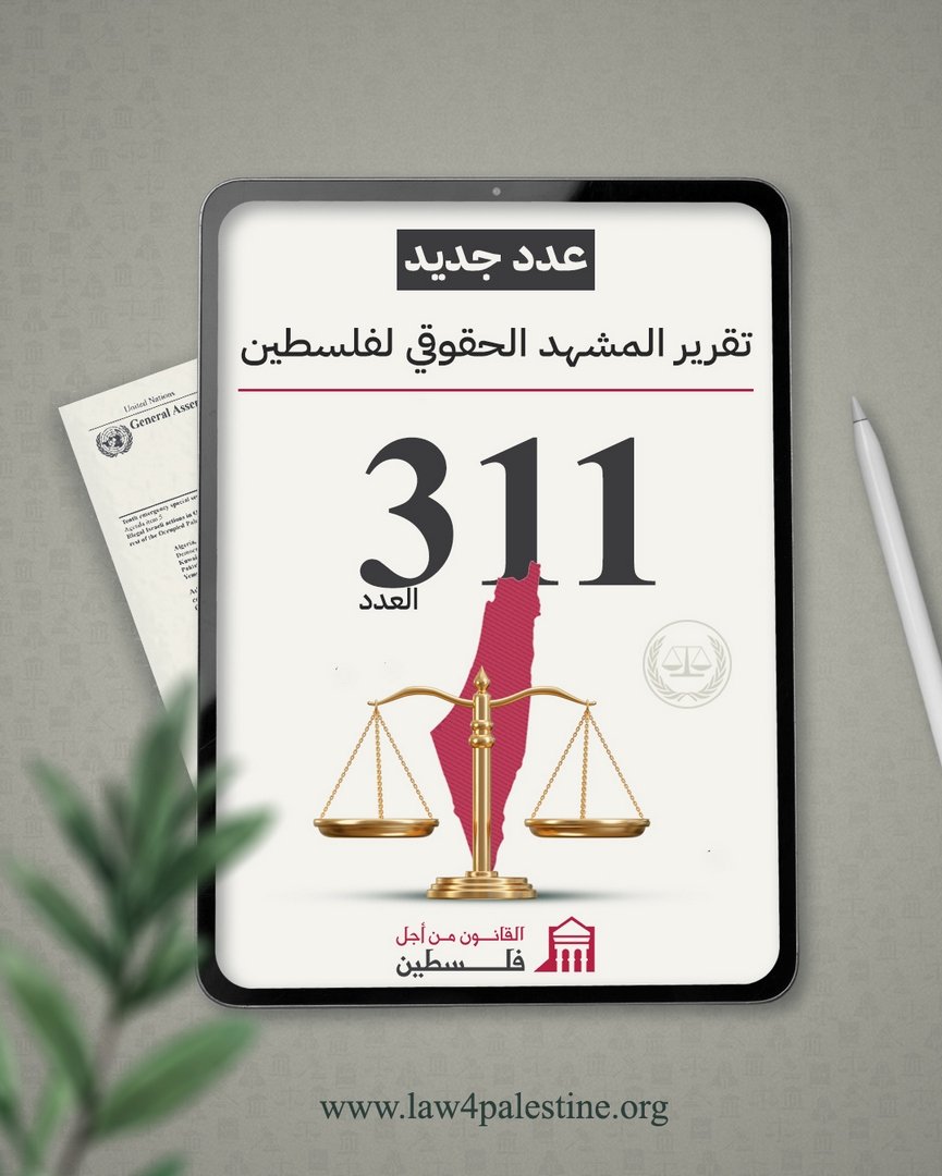 المشهد الحقوقي لفلسطين – العدد 311 رصد لأهم الإصدارات و النشاطات المتعلقة بـ فلسطين والقانون الدولي على مدار الأسبوع محلياً ودوليا 14 – 20 ديسمبر/كانون الأول