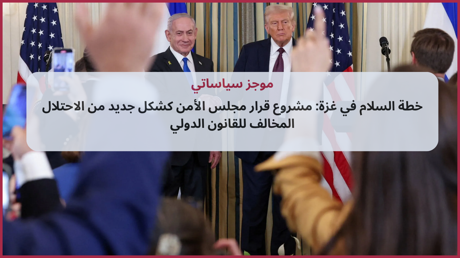 موجز سياساتي | خطة السلام في غزة: مشروع قرار مجلس الأمن كشكل جديد من الاحتلال المخالف للقانون الدولي لتحميل هذه المادة بنسخة بي دي اف،