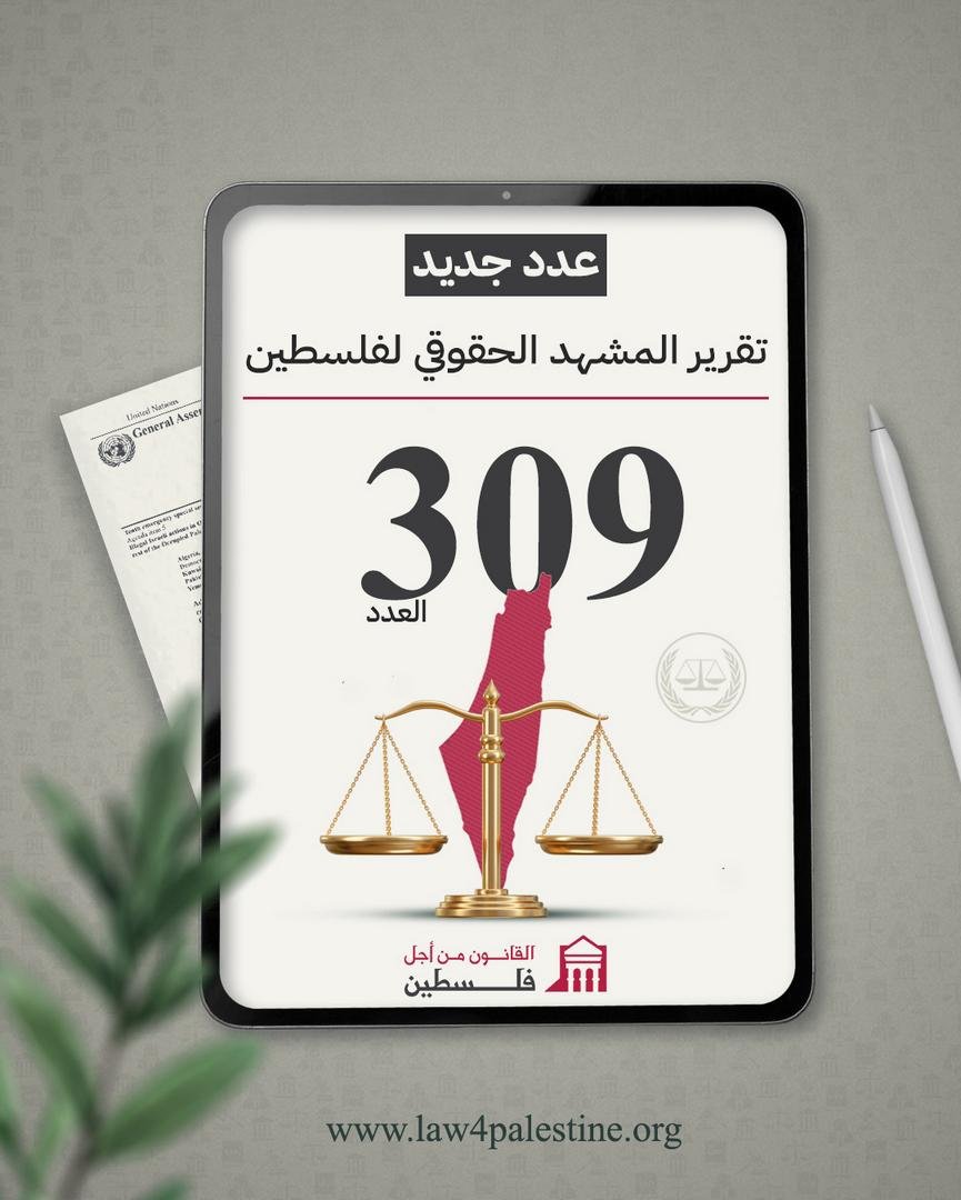 المشهد الحقوقي لفلسطين – العدد 309 رصد لأهم الإصدارات و النشاطات المتعلقة بـ فلسطين والقانون الدولي على مدار الأسبوع محلياً ودوليا 30 نوفمبر – 6 سبتمبر